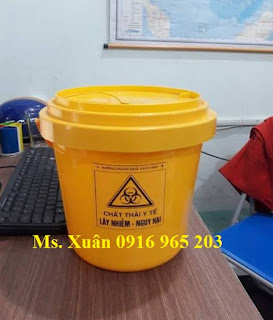 bình hủy kim tiêm y tế 5 lít, xô y tế 5 lít dùng cho xe tiêm bệnh viện. Bán xô